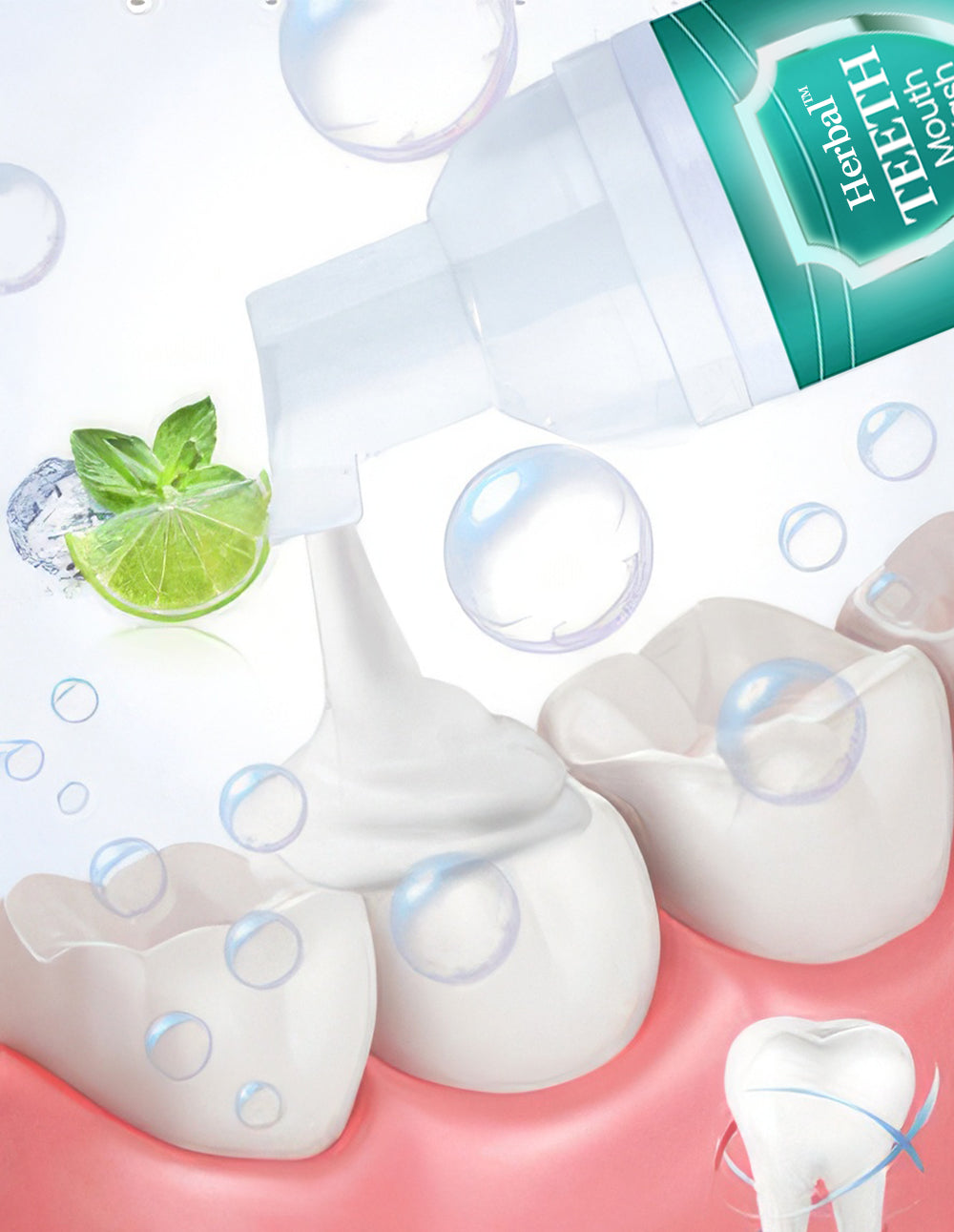 HERBAL TEETHClean MOUTHWASH CAN KILL 99.99% OF BACTERIA, ELIMINATES BAD BREATH, REMOVES TOOTH PLAQUE AND TARTAR, HEALS GINGIVITIS AND PERIODONTITIS, RELIEVES TOOTHACHE, PREVENTS AND REMOVES CAVITIES, RESTORE TOOTH ENAMEL, STIMULATES THE FORMATION OF RESTORATIVE DENTIN, AND STIMULATE THE REGENERATION OF LOST TEETH.
